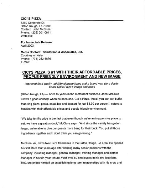 Sanderson PR • 20th March 2025 Cici's Pizza Is #1 With Their Affordable Prices, Environment & New Image